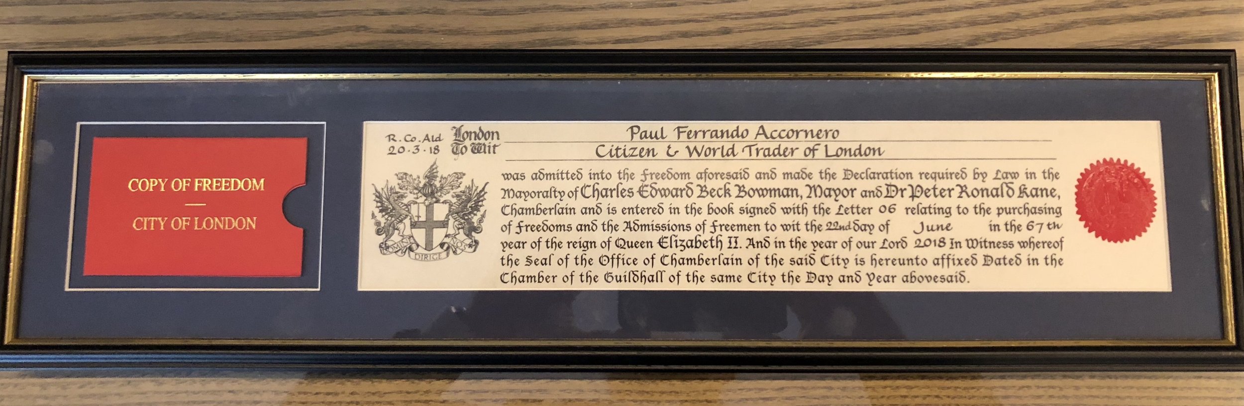 CITY OF LONDON (HONOURS) WORSHIPFUL COMPANY OF WORLD TRADERSCITY OF LONDON FREEDON OF THE CITY OF LONDON