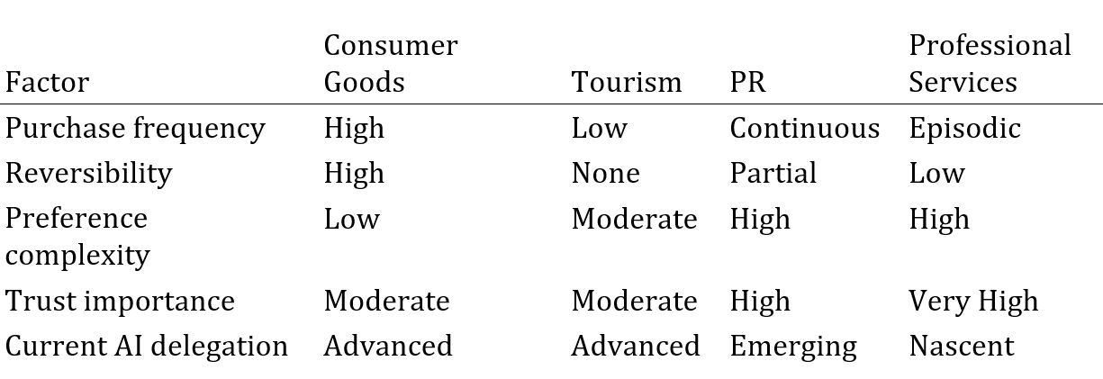 The Shopper Schism is not a phenomenon confined to consumer packaged goods, nor a curiosity of e-commerce optimisation. It represents a fundamental transformation in how commercial exchange operates when algorithmic agents mediate between human principals and market counterparties. Tourism shows the transformation in advanced form; public relations shows it operating on the supply side of attention markets; professional services show it emerging in trust-intensive contexts.